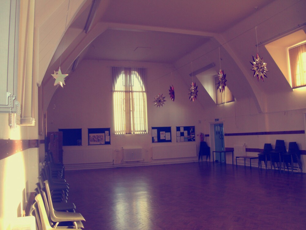 Chairs stacked in two.