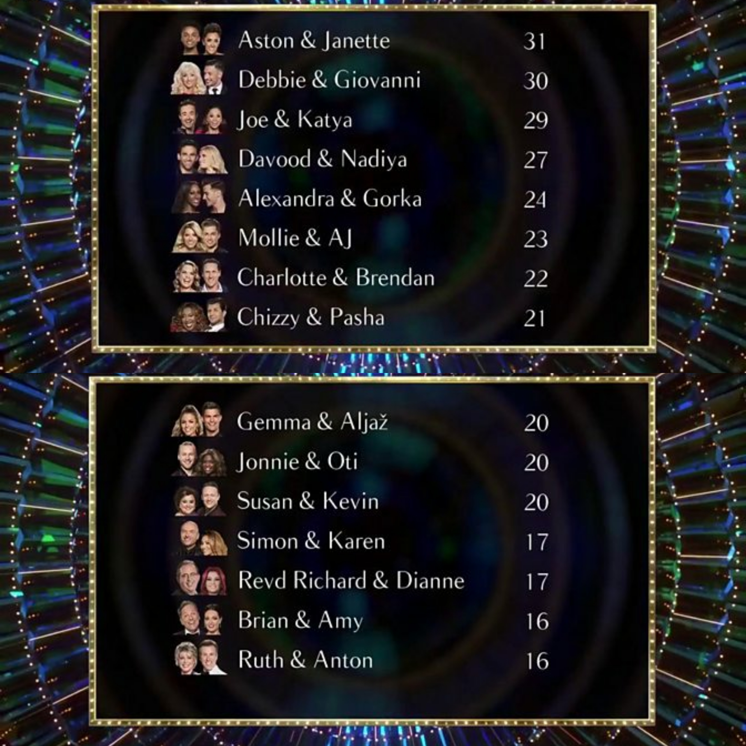 Here’s Aston and Janette’s scores: