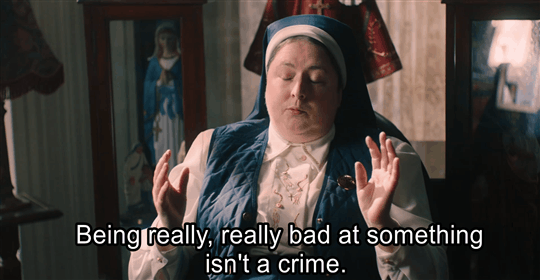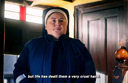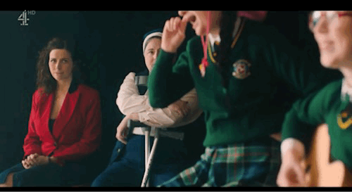But that’s not the issue. See, Erin is absolutely convinced that they wrote a very similar song whilst on the last Friends Across the Barricade retreat with Father Peter. Jenny’s down right plagiarized them. But before any lawsuit for copyright can be filed, Sister Michael gets a call. Her aunt’s passed away.
