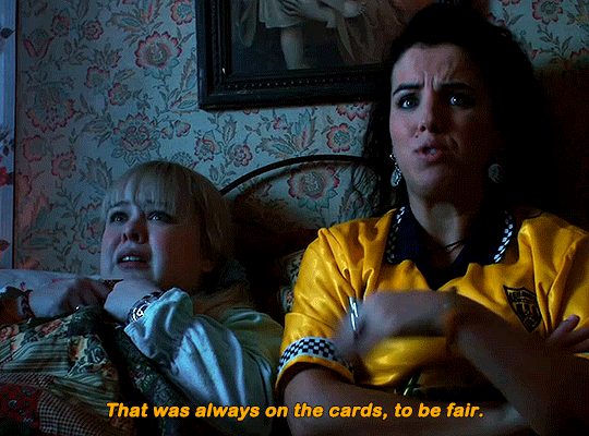 They know that, Da Gerry tells him. They’ve not just rocked up here for the Chocolate Kimberleys. After grudgingly crossing Carlos’ palm with silver, the seance begins. And Aunt Sarah’s American Air Force lad is briefly summoned back before she commands him away. And they’re just about connecting with Mammy, before a voice yells out for Kevin.