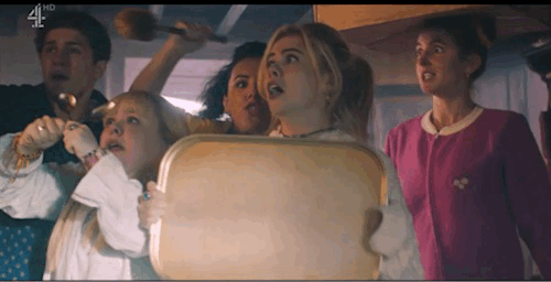 Horrified, the gang – carrying a now unresponsive James – abandon the van and walk up to the house, where Sister Michael has told them that the keys are under a plant pot. Although which one of the dozen or so out in the front yard isn’t clear, which of course leads Clare to have what is quite possibly her biggest freak out of the series thus far…