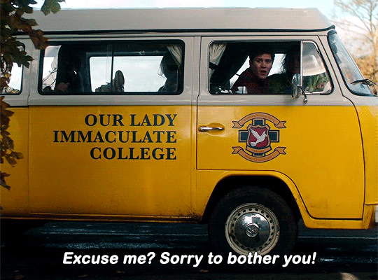 James is handed the keys to the school camper van, and the gang immediately begin planning a night with a free house to themselves over the border where – and this is where it’s apparent why Michelle was pushing so hard to, er, help – they can find some hot farmers that are total rides. They’ll also find a lesbian farmer for Clare. They’re a big thing in Donegal.