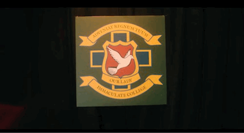 Now, it’s a bit of a rule of thumb that if an episode of Derry Girls opens on a panning shot of the school badge for Our Lady Immaculate College, then that usually means one of two things; an assembly of some description, or an assembly where Jenny Joyce is singing.